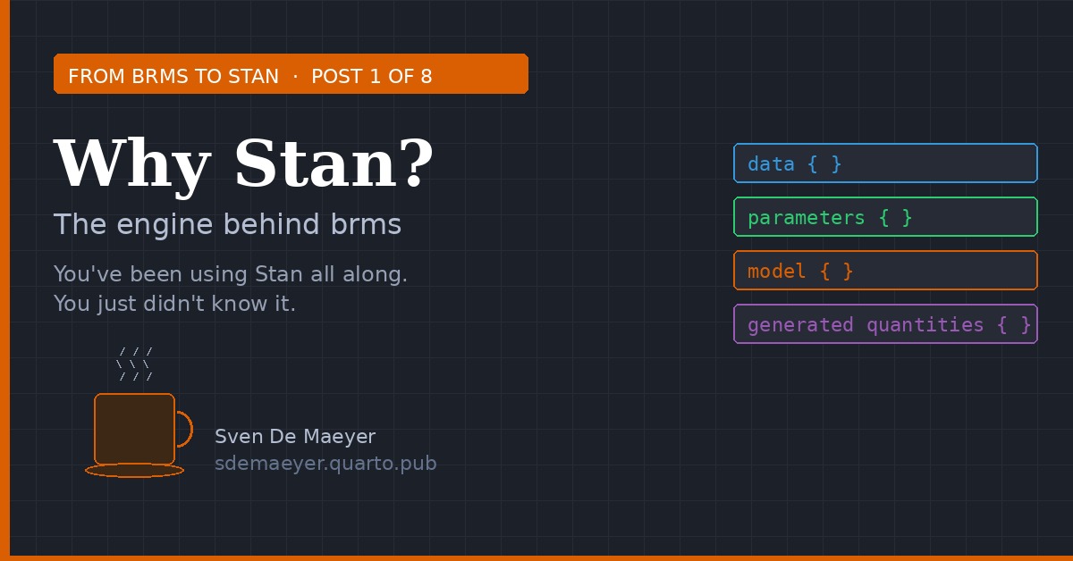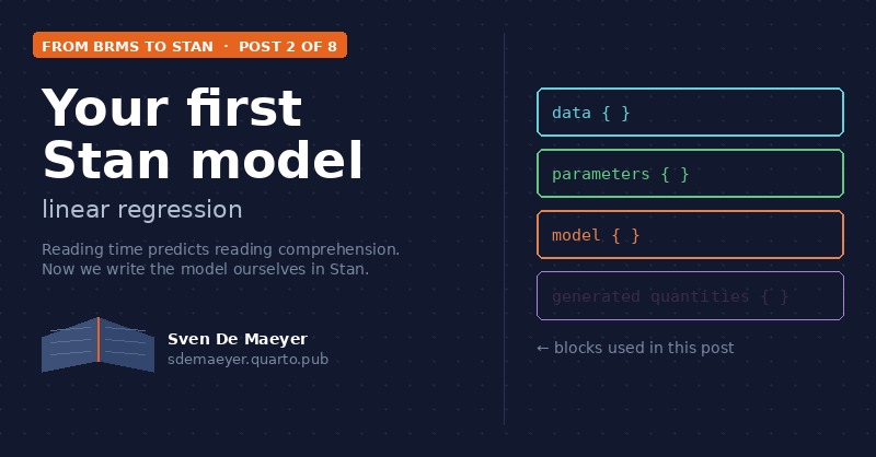 In the previous post we peeked under the hood of brms and saw Stan staring back at us. Now it’s time to write a Stan model ourselves — from scratch, block by block. We’ll…